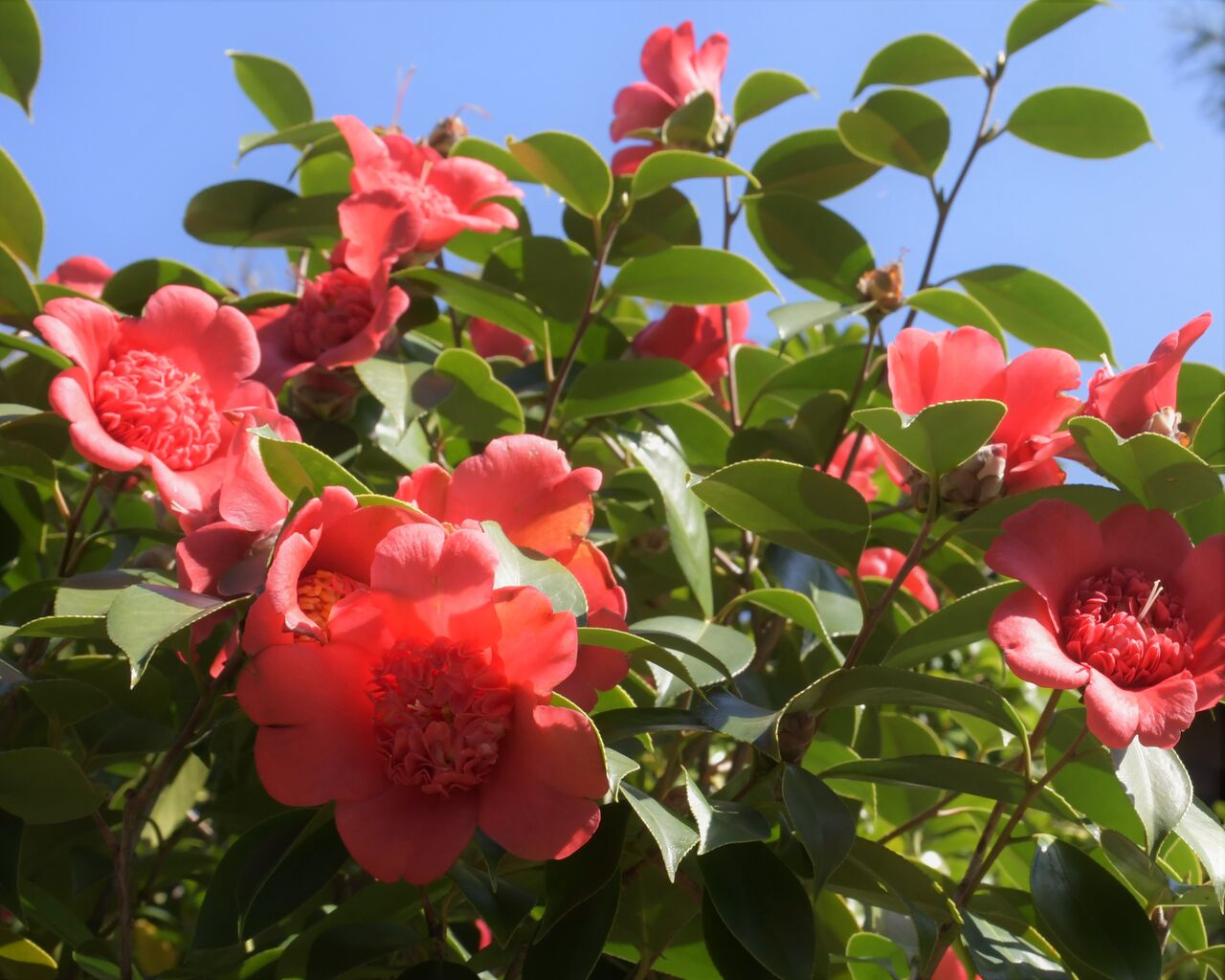 2021年03月30日 春は椿・11 紅唐子 紅唐子(べにからこ)。関西では日光(じっこう)と呼ばれる椿の一種。花芯の細長い旗弁が多数できて、唐子咲きになる。花付きは他の品種より悪く開花数は少ないとされるので、この写真のような状態は、例外なのかもしれない。春空に向かって思い思いの方角で咲く様は痛快で良い。 カテゴリなしの他の記事 < 前の記事次の記事 > コメント コメント一覧 (1) 1. I.Y. 2021年06月18日 07:53 おはよう御座います。 太陽光に輝く紫陽花の葉緑と花に、植物の持つ生命力を感じます。 写真撮影において、被写体の色彩、形状、又シチュエーションなど表現する為に、光量も大事な要素の一つなのでしょうか。 コメントフォーム 名前 コメント 評価する リセット リセット 顔 星 投稿する 情報を記憶